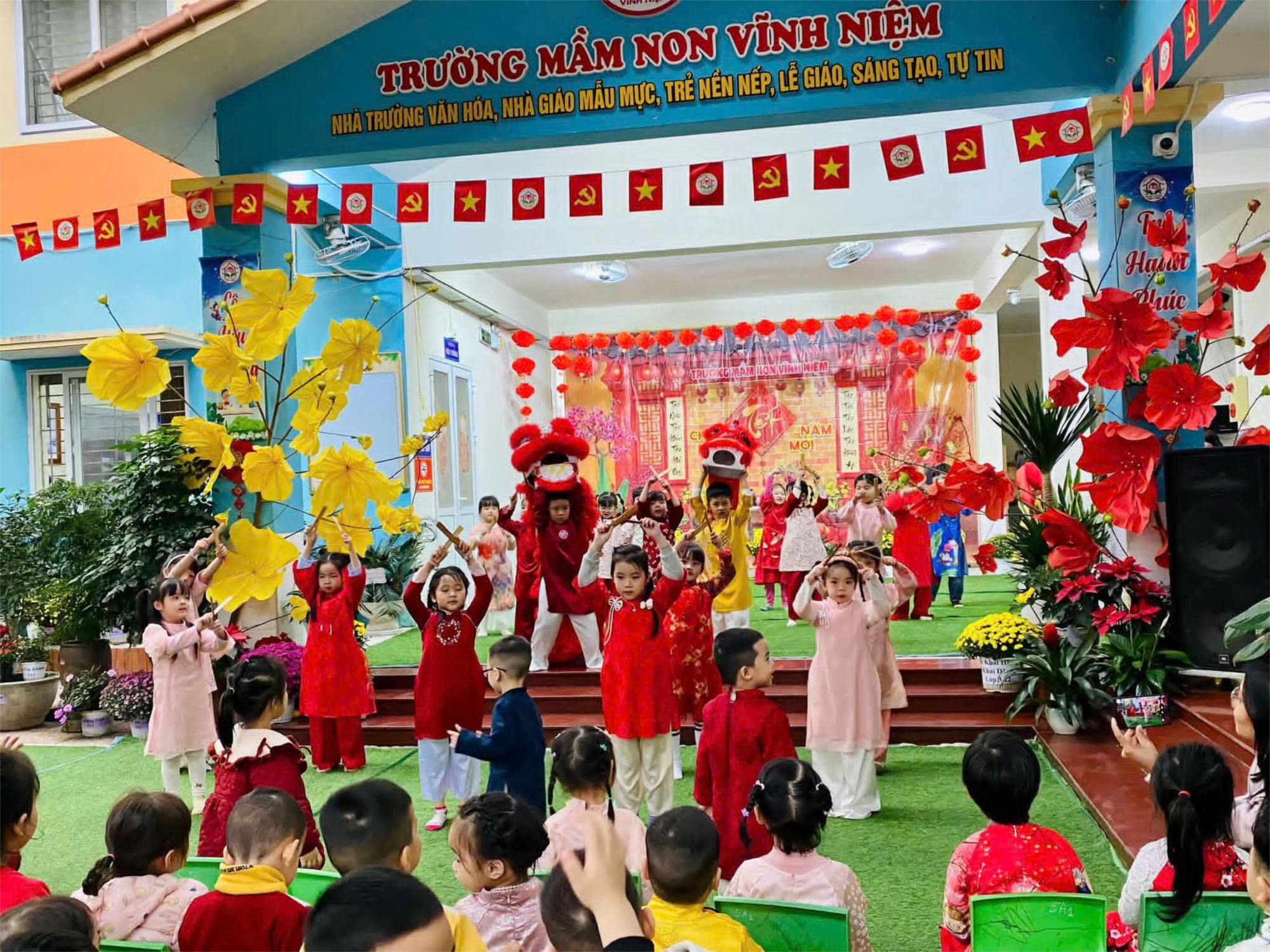🌸🎉 BÉ VUI ĐÓN TẾT – RỘN RÀNG SẮC XUÂN TẠI TRƯỜNG MẦM NON VĨNH NIỆM 🎉🌸