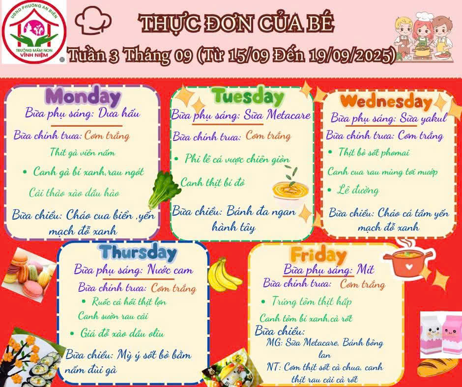 * Món ăn hôm nay: Thứ 2/15/9/2025:
